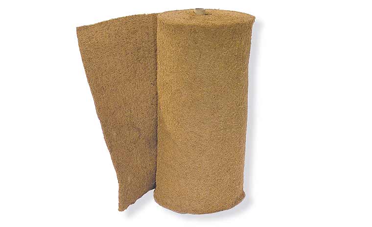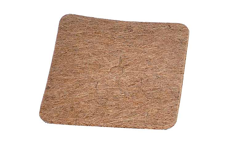 Coco Liner or Coir needle felt are non-woven fabric of coir fiber. Usually supplied in rolls, sheets or cut in disc shape for easy spreading around the plants in pots. These are made by interlocking coir fiber through needling. These felt pads can be used for low cost acoustic control, air & water filtration, thermal insulation and also for soil erosion control.